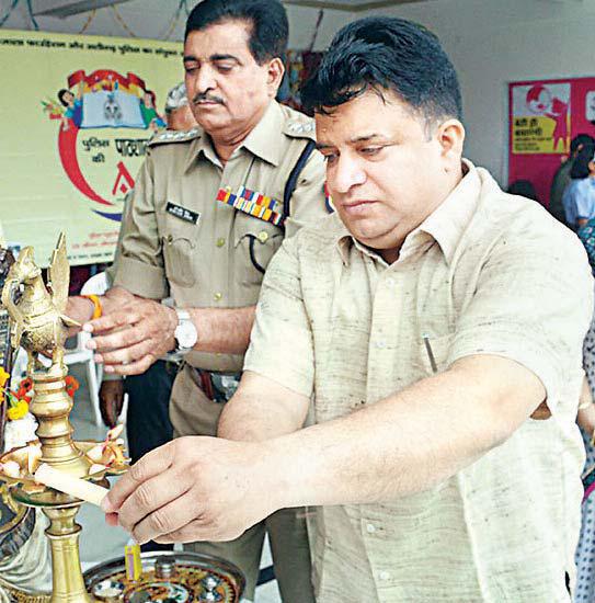 कार्यक्रम का शुभारंभ करते ब्रिलिएंट पब्लिक स्कूल के प्रधानाचार्य श्याम कुंतेल, सीओ सिविल लाइन सोमवीर सिंह।