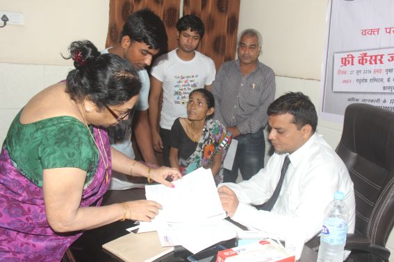 कानपुर। भक्ति वेदांत कैंसर इंस्टीट्यूट मुंबई और अमर उजाला फाउंडेशन के तत्वावधान में सोमवार 27 जून  को मधुलोक हॉस्पिटल के ब्लॉक किदवई नगर में लगे कैंप में 450 से ज्यादा लोग पहुंचे। सबसे अधिक मुंह के कैंसर वाले मरीज थे। गंगा बेल्ट की बीमारी गॉल ब्लेडर के कैंसर के मरीज भी बड़ी संख्या में कैंप में मिले। तीन मरीजों का मुंबई में फ्री ऑपरेशन होगा। 34 मरीजों को तत्काल ऑपरेशन के लिए बताया गया है। कानपुर समेत कानपुर देहात, हरदोई, बांदा, इटावा, औरैया, उरई, कन्नौज, हमीरपुर, चित्रकूट समेत आसपास के कई जिलों के मरीज सुबह से ही मधुलोक हॉस्पिटल पहुंचने लगे थे। साउथ कोरिया से रोबोटिक्स कैंसर सर्जरी का प्रशिक्षण लेकर लौटे मुंबई के कैंसर सर्जन डॉ. विष्णु अग्रवाल डॉ. अमोल और नेत्रपाल के साथ सुबह तकरीबन आठ बजे अस्पताल पहुंचे।