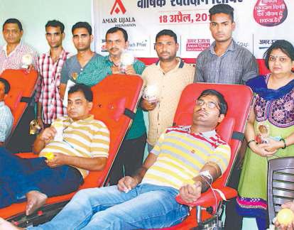बरेली। दिल से आवाज आई चलो कुछ अच्छा करते हैं और लोग महादान करने निकल पड़े। अमर उजाला के 69वें स्थापना दिवस पर बरेली अमर उजाला परिसर में आयोजति रक्तदान शिविर में युवा ही नहीं महिला और बुजुर्ग भी पहुंचे। चिलचिलाती धूप में भी इनके हौसले और जज्बे को कोई डिगा नहीं सका। सिर्फ चार बेड थे लाइन में खड़े होकर रक्तदान करना पड़ा लेकिन फिर भी परेशान नहीं हुए। इस यज्ञ में इस बार 127 महादानियों ने इतनी ही यूनिट रक्तदान किया। आईएमए की टीम ने सुबह 10 बजे से शाम को 4 बजे तक कार्य किया। कुछ लोग पहली बार रक्तदान करने आए थे तो कुछ लोगों के जीवन में एक रक्तदान यह भी जुड़ गया। समाजसेवी और रक्तदाता इकबाल सिंह बाले ने भी अपने जीवन का 72वां रक्तदान किया। वे सुबह से शाम तक रक्तदाताओं का हौसला बढ़ाने के लिए यहीं डटे रहे। आईएमए के मेडिकल ऑफिसर डॉ. जेपीएस सेठी ने रक्तदान के फायदे बताए। कई ऐसे भी रहे जिनका हीमोग्लोबिन कम होने पर रक्तदान नहीं करने दिया।