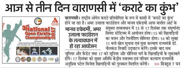 अमर उजाला फाउंडेशन और मानव एकेडमी ऑफ़ मार्शल आर्ट के संयुक्त तत्वावधान में 15 से 17 दिसम्बर तक सम्पूर्णानन्द सिगरा स्टेडियम, काशी में राष्ट्रीय ओपन कराटे प्रतियोगिता के रूप में ‘कराटे का कुंभ’ का आयोजन किया जा रहा हैं. कराटे कुंभ का उद्घाटन 16 को खेल सूचना एवं युवा कल्याण राज्यमंत्री डॉ. नीलकंठ तिवारी करेंगे.... Read More
