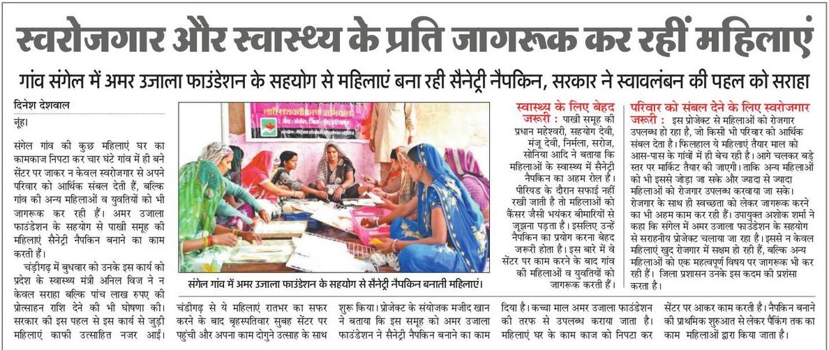 अमर उजाला फाउंडेशन के सहयोग से महिलाएं संगेल गांव में बना रही है सेनेटरी नैपकिन, स्वरोजगार और स्वास्थ्य के प्रति कर रही है ग्रामीणों को जागरुक.