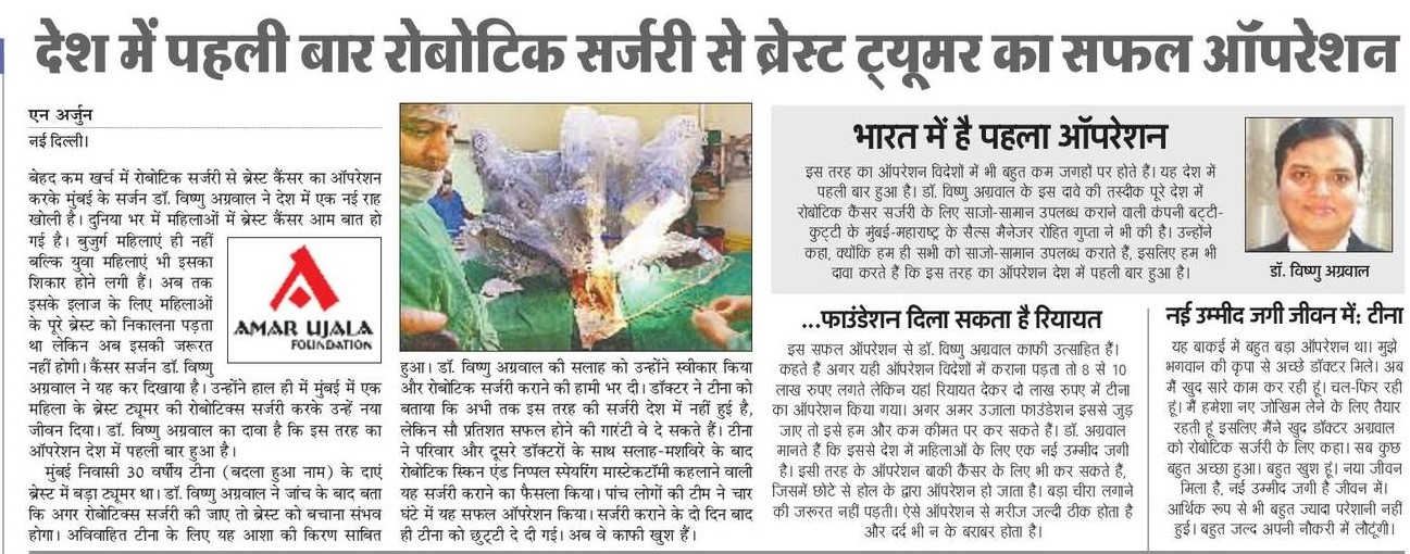 रोबोटिक सर्जरी से ब्रेस्ट कैंसर का सफल ऑपरेशन