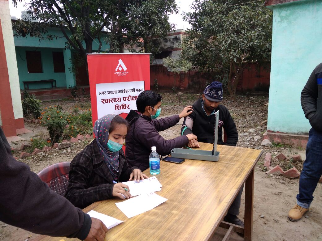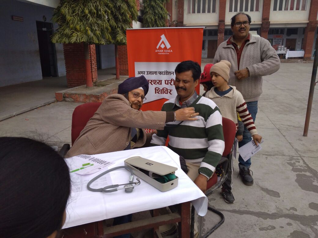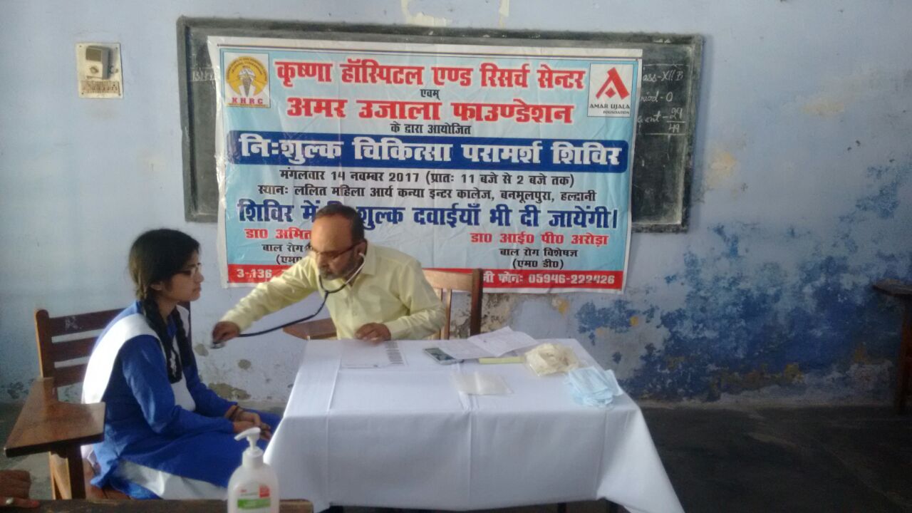 अमर उजाला फाउंडेशन द्वारा कृष्णा हॉस्पिटल के सहयोग से शुक्रवार को ललित आर्य बालिका इंटर कॉलेज, हल्द्वानी में एकदिवसीय निःशुल्क चिकित्सा शिविर में 130 मरीजों का स्वास्थ्य परीक्षण किया गया. शिविर में मरीजों को मुफ्त दवाईयां एवं चिकित्सक के परामर्शानुसार रक्त की जांच भी मुफ्त में की गई.