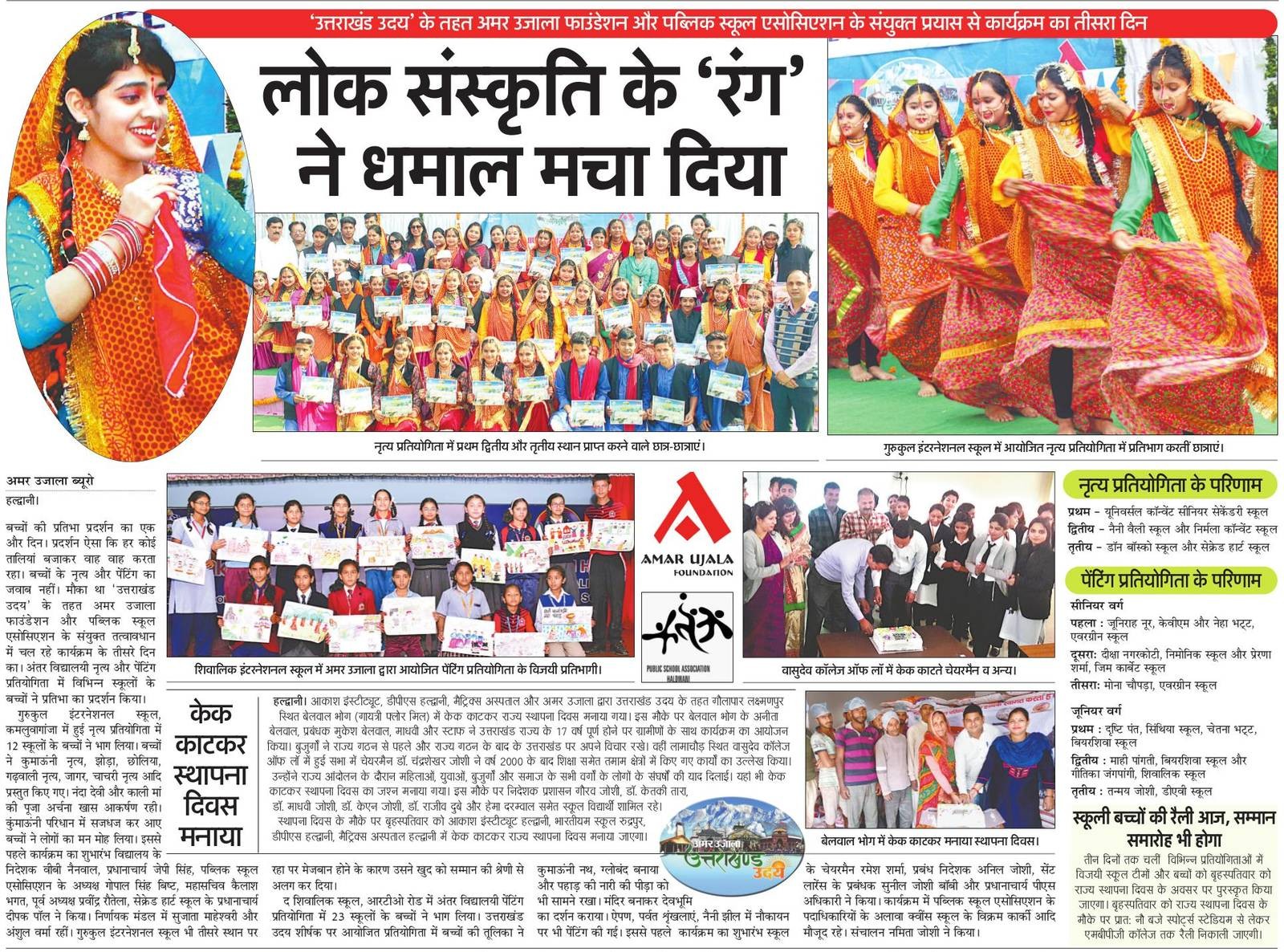 उत्तराखंड उदय के तहत अमर उजाला फाउंडेशन और पब्लिक स्कूल एसोसिएशन के संयुक्त तत्वावधान में चल रहे कार्यक्रम के तीसरे दिन बच्चों की प्रतिभा का प्रदर्शन गुरुकुल इन्टरनेशनल स्कूल, कमालुवागांजा में देखने को मिला. इस मौके पर शिवालिक इंटरनेशनल स्कूल में लोक नृत्य प्रतियोगिता व पेंटिंग प्रतियोगिता का भी आयोजन किया गया. गौरतलब हो की... Read More