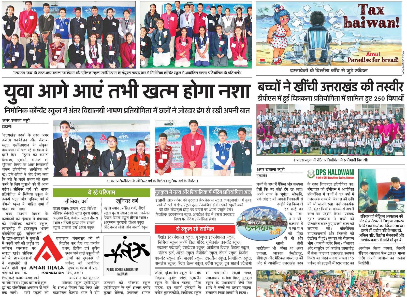 उत्तराखंड उदय के तहत अमर उजाला फाउंडेशन और स्कूल एसोसिएशन के संयुक्त तत्त्वावधान में चल रहे कार्यक्रम के दुसरे दिन ‘ड्रग्स का कसता सिकंजा, युवाओं, समाज की भूमिका’ विषय पर अंतर विद्यालयी भाषण प्रतियोगिता निमोनिक कान्वेंट स्कूल में आयोजित की गई. सीनियर वर्ग की भाषण प्रतियोगिता में सिंथिया स्कूल के उत्कर्ष भट्ट और जूनियर वर्ग... Read More